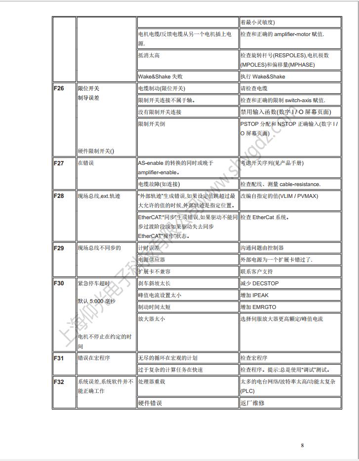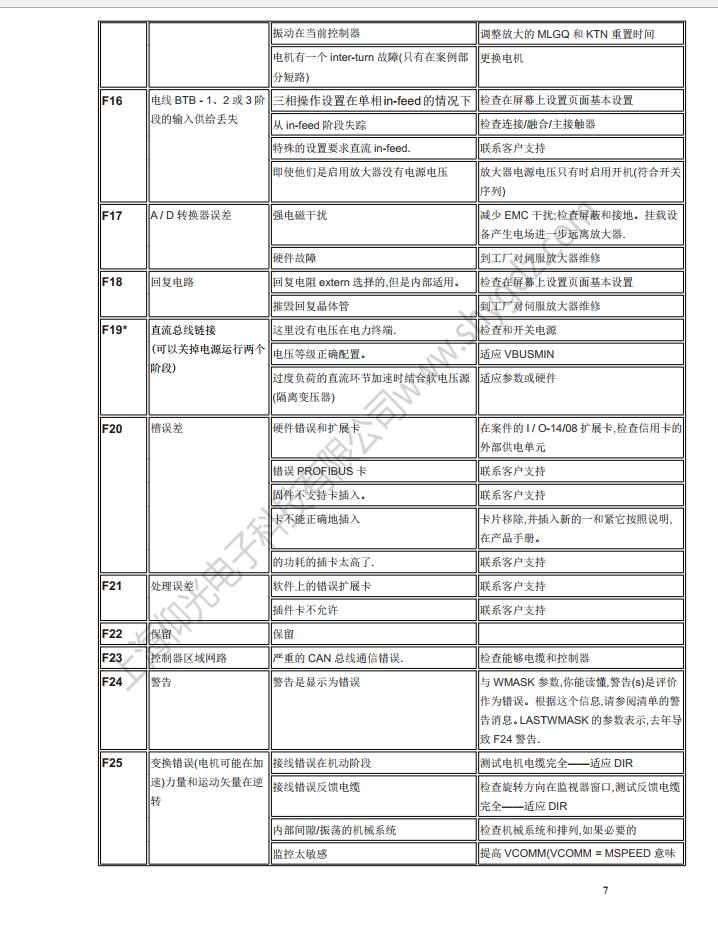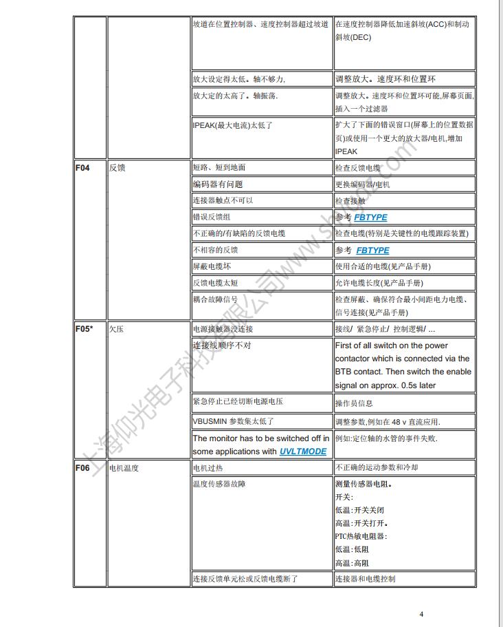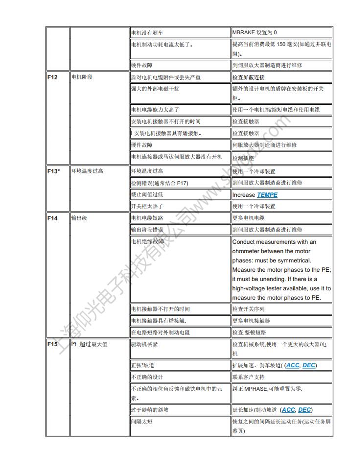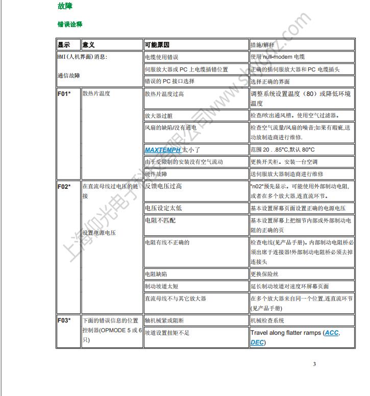 科爾摩根S62000維修,S64001,S67001,S60100,S60300,S60600,S61000,S61400,S30363,S30661,S31061,S30301,S30601,S30101維修、CR03550維修、科爾摩根伺服器常見的故障有:F02、F01、F04、F06、F09、F15、F19、F25、無顯示等;KOLLMORGEN科爾摩根伺服常見故障現(xiàn)象:上電報(bào)過電流故障、過電壓、地短路故障、欠電壓、電壓缺相、外部報(bào)警、散熱片過熱、外部報(bào)警、變頻器內(nèi)過熱、制動電阻過熱、變頻器過載、DC熔斷器斷路、存儲器異常、鍵盤面板通信異常?茽柲Ω欧(qū)動器故障顯示警告顯示及解決辦法一覽表: