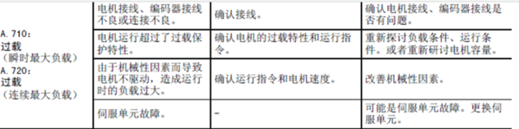 安川伺服電機(jī)SGM7G-1AAFC6C報(bào)警710意思是:瞬時(shí)最大負(fù)載過載。