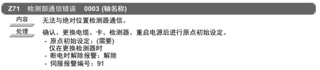 三菱數控系統報警Z71 0003報警處理:數控設備的外部故障可以分為軟故障和外部硬件損壞引起的硬故障。軟故障是指由于操作、調整處理不當引起的,這類故障多發生在設備使用前期或設備使用人員調整時期。對于數控系統來說,另一個易出故障的地方為伺服單元。由于各軸的運動是靠伺服單元控制伺服電機帶動滾珠絲杠來實現的。用旋轉編碼器作速度反饋,用光柵尺作位置反饋。一般易出故障的地方為旋轉編碼器與伺服單元的驅動模塊。也有個別的是由于電源原因而引起的系統混亂。特別是對那些帶計算機硬盤保存數據的系統。