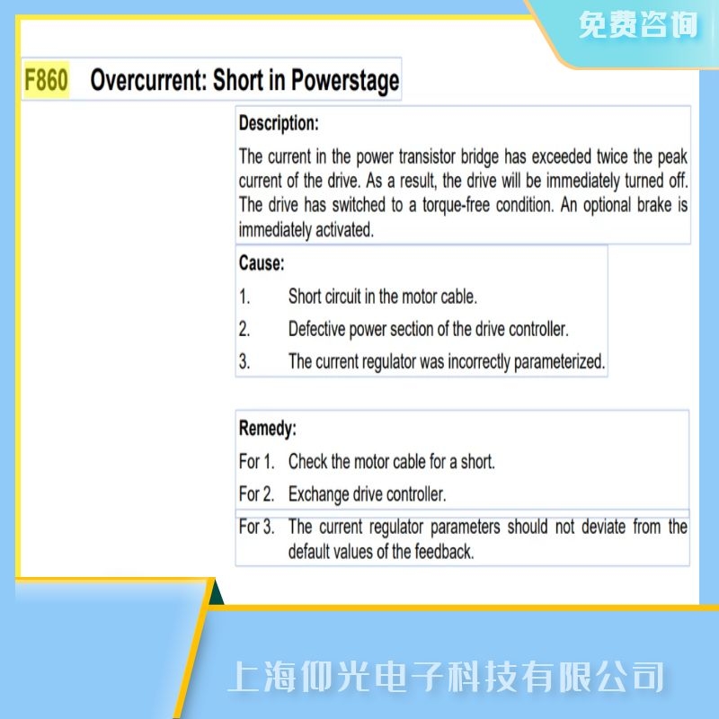 無論任何品牌的工控產品由于環境惡劣,操作不當,使用年限等原因,難免會出現故障,最重要的是及時查找出原因,對應解決故障,及早恢復正常使用上海仰光面向全國,支持順豐到付,擁有全套測試平臺,軟硬件結合,帶載運行,維修速度快,價格低,免費檢測,修好測試后發出,部分當天修好,修不好不收費用,免費咨詢:13817011982張工.關于力士樂直流電機伺服器報警代碼F860過流故障維修服務的技術問題上海仰光電子提供24小時免費咨詢服務.
